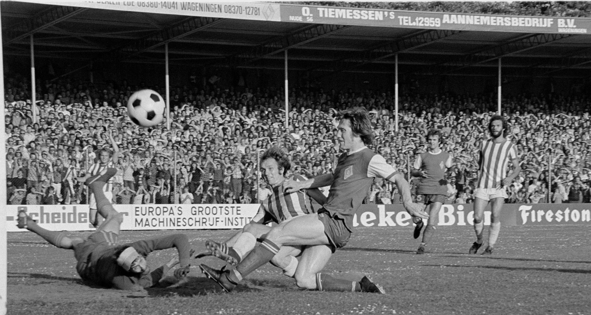 Op zondag 13 juni 1976 volgde de ontknoping van een nacompetitie die bloedstollend spannend was. VVV, Fortuna SC en Vitesse hadden alle drie nog een kans op promotie. VVV moest uit spelen, maar het voelde als een thuiswedstrijd. Zo’n 10.000 VVV-supporters maakten er in het stadion op de Wageningse berg een grandioze happening van. Wageningen kon niet meer promoveren, maar de spelers wilden nog een rekening vereffenen met hun tegenstanders. Wageningen-trainer Fritz Korbach stookte het vuurtje op. VVV ging de strijd volop aan, en dus werd het een stevige wedstrijd.